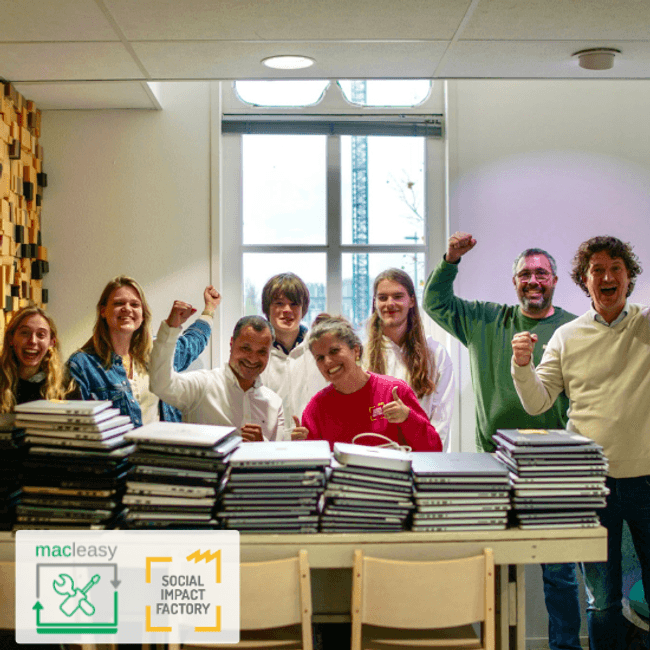 Dit is onderdeel van onze missie: vóór 2030 willen we 10.000 Apple-computers niet laten verstoffen of vroegtijdig recyclen, maar ze repareren, inzetten voor opleiding en doneren aan mensen die ze écht nodig hebben.